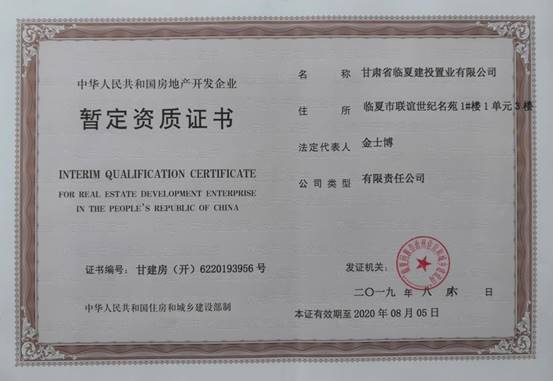 臨夏公司取得房地產(chǎn)開發(fā)資質(zhì)