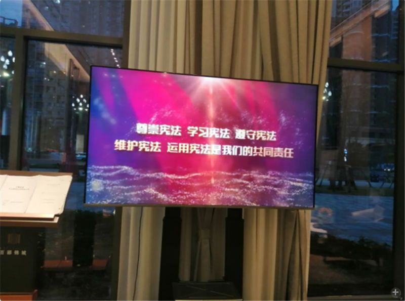 在“憲法宣傳周”內(nèi),成都公司黨支部在百酈錦城營(yíng)銷(xiāo)中心播放憲法宣傳公益廣告,讓?xiě)椃矣鲬魰?,在全社?huì)形成學(xué)法尊法守法用法的良好氛圍。