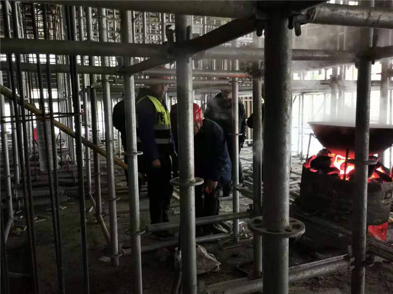 為了確保冬季施工順利進行,結(jié)合三個項目實際情況,在現(xiàn)場施工方面,各項目搶前抓早,嚴格執(zhí)行冬季施工方案。通過對施工平臺下部架爐生火并全部搭建保溫棚,對混凝土底板等外露結(jié)構(gòu)物穿上了“防護衣”等措施,扎實有效落實好混凝土防凍保溫工作,從而保證工程質(zhì)量。