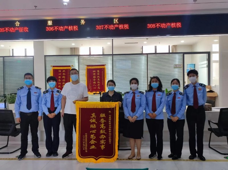 9月9日,置業(yè)公司將寫有“服務(wù)高效辦實事,真誠貼心為企業(yè)”的錦旗送至七里河稅務(wù)局政務(wù)大廳辦稅窗口,用最質(zhì)樸、最真摯的方式對他們表示感謝。