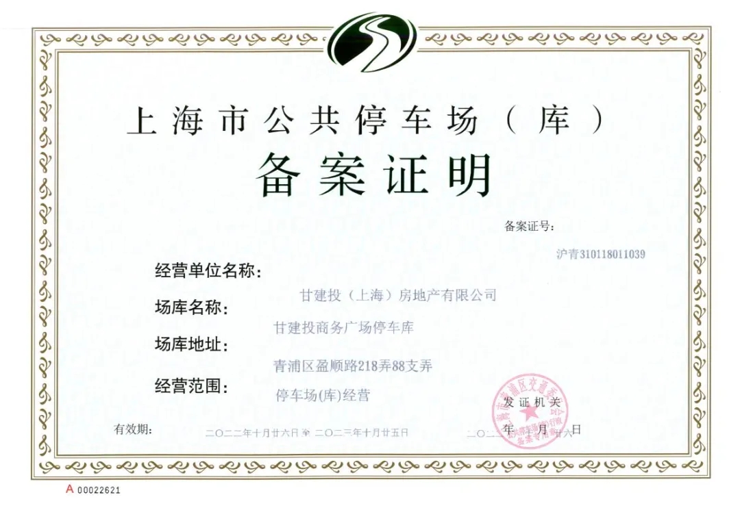近期,上海子公司正式取得《上海市公共停車場(chǎng)(庫(kù))備案證明》,甘建投商務(wù)廣場(chǎng)停車場(chǎng)(庫(kù))可正常對(duì)外收費(fèi)經(jīng)營(yíng)。