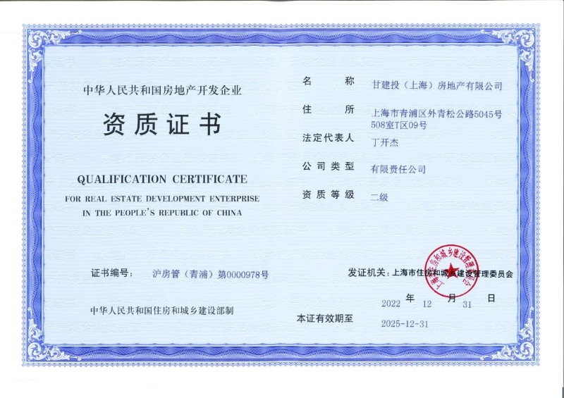 4月21日,上海子公司順利取得房地產(chǎn)開發(fā)二級資質(zhì)證書。