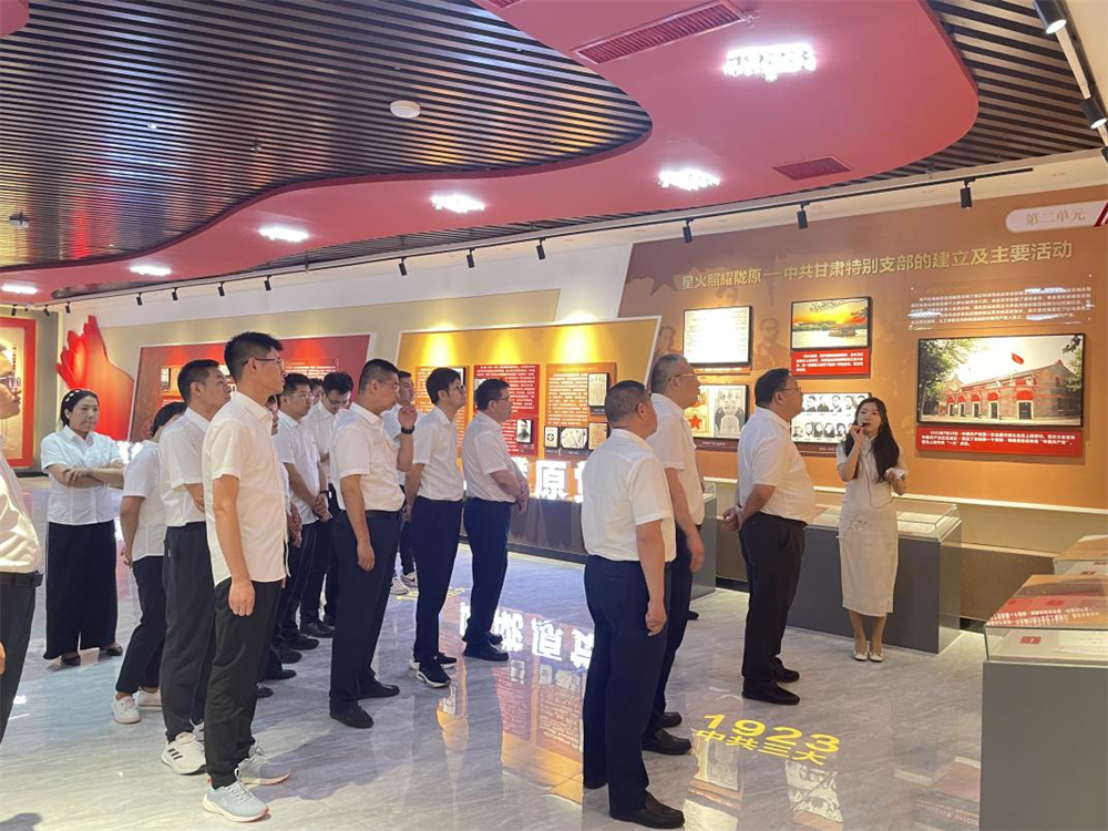 在棲云小鎮(zhèn)的甘肅特別支部體驗課堂紅色展館內,全體黨員在講解員的帶領下,詳細回顧了甘肅革命的發(fā)展歷程,并通過觀看革命宣教片、紅色情景劇和閱讀書籍等方式,領略革命先驅的愛國精神,傳承甘肅本土的紅色基因。