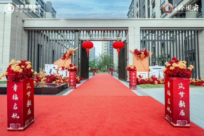經(jīng)過盛裝布置,園區(qū)沿途一路鋪裝紅毯,枝頭掛滿紅燈籠,單元門口點(diǎn)綴燦爛花束,隨處可見“歡迎回家”的標(biāo)語,“回家”的暖流直抵人心。