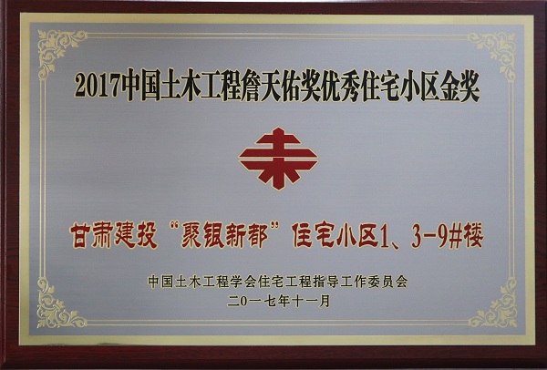 甘肅三建榮獲2017年詹天佑獎(jiǎng)優(yōu)秀住宅小區(qū)金獎(jiǎng)