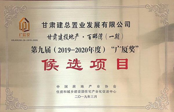 4月11日,在中國房地產(chǎn)協(xié)會各地房協(xié)會長、秘書長工作會議上,“甘肅建投地產(chǎn)?百酈灣(一期)”項目入選第九屆(2019—2020年度)“廣廈獎”候選項目。