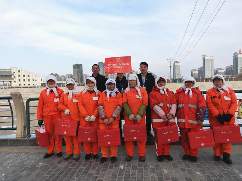 當日,武威分公司團隊為寒冬里堅守在崗位的環(huán)衛(wèi)工人、城管、交警們送上圍巾、暖寶寶、保溫杯等一份份暖心禮物,讓這些城市的守護者們感受到來自大家庭的溫暖。